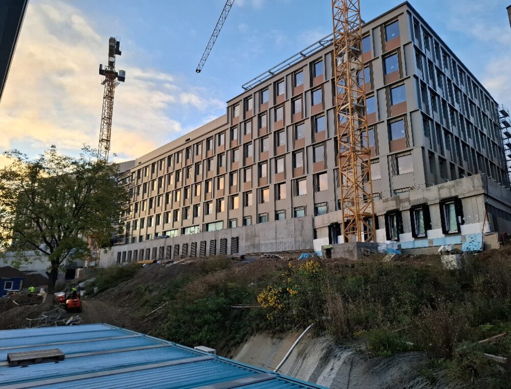 Podzim na stavbě BioPharma Hub se nese ve znamení viditelného pokroku. Podzimní deště nezaskočily stavbu, která je pečlivě zajištěna proti nepřízni počasí. Na začátku října proběhl již sedmý statutární kontrolní den, který připomněl, že do dokončení zbývá přibližně tři čtvrtě roku.